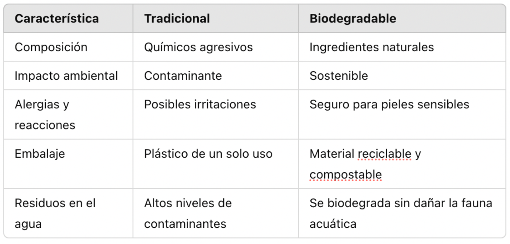 2. Diferencias entre detergentes tradicionales y biodegradables